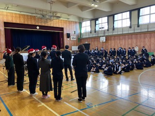 本日、終業式のあと、2学期頑張ってきた子どもたちに向けて、教職員が歌や演奏を披露しました。