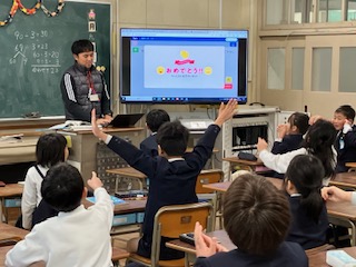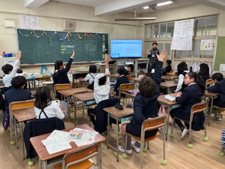 3年生算数科です。1メートルの4分の1の長さについて、考えました。