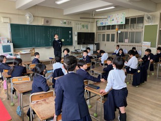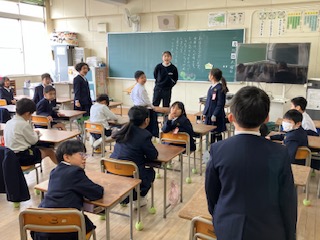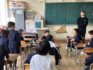 2年生です。冬休みの出来事で、みんなに伝えたいことを発表しました。