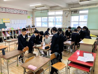 1・2組合同で、学習発表会に向けて、役割分担をしました。