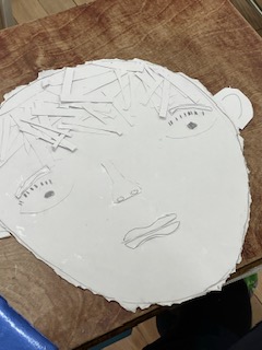 凧の制作と自分の顔の髪の毛の部分を作りました。