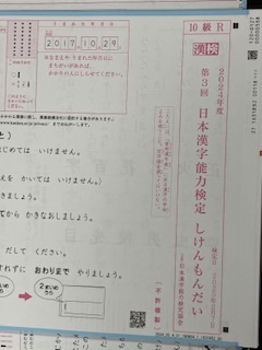初めての漢検です。これまで一所懸命練習をしてきました。さて、結果はどうなりますか。