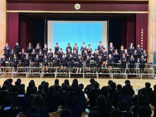 2年生の歌の発表です。とても楽しいそうに歌っています。