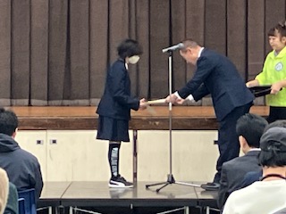 区役所にて、つたえよういのちのつながりのの表彰式がありました。本校からは、2年生と5年生の子どもたちが、表彰されました。