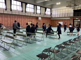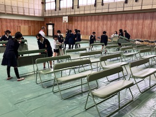 5年生が、卒業式の準備を手伝いました。6年生のために、率先して動いていました。