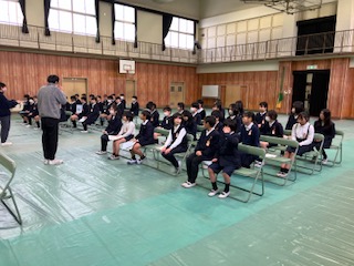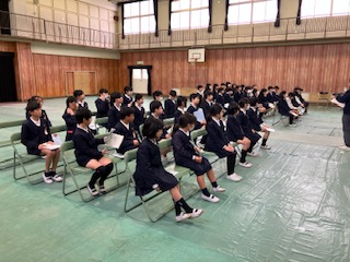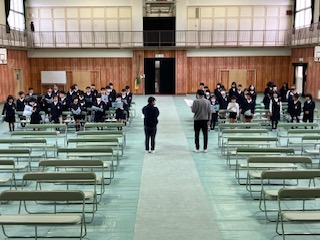 講堂にて、5年生も本日より本格的に式練習を始めました。