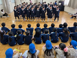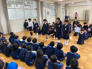 先日から準備をしていた、保育園、幼稚園との交流を行いました。1年生の子どもたちは、練習してきた説明ややり方を、自信を持って伝えていました。なんだか急に、しっかりした姿が印象的でした。