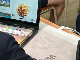 図工の作品を持ち帰る袋に自分の好きな絵を描きました。