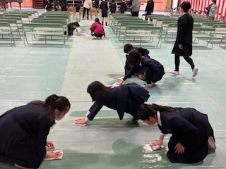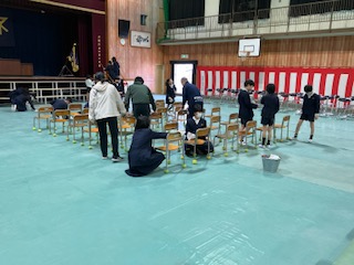 4月7日(月)、令和7年度入学式を行います。本日、新6年生の子どもたちが準備のお手伝いをしました。