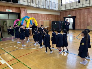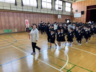1年生と、2年〜6年生の子どもたちとの対面式を行いました。