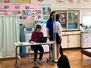 身長、体重の測定と保健室の先生から保健室の利用方法について、説明を聞きました。