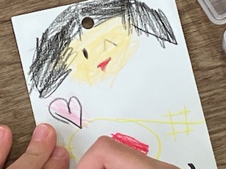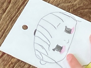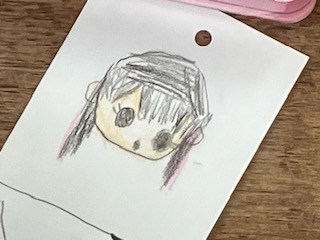 担任の先生が、それぞれの名前を書いてくださった日直当番表カードに、自分の顔を描きました。