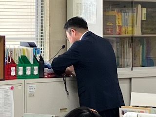 教頭先生の放送後、非常ベルがなりました。担任の先生が、1年生の子どもたちに、放送をしっかり聞くようにとの指示がありました。