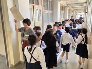 一年生に学校内を案内するために、紹介する場所を確認しました。