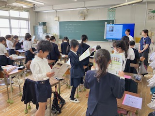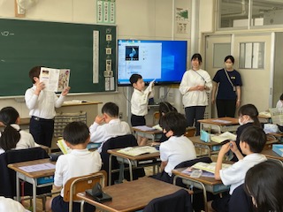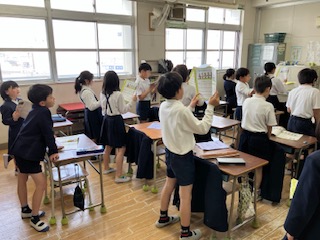 前の2人と、他の子どもたちとでパートを分担して、小さな世界を歌いました。