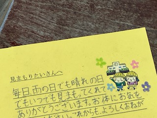 みまもり隊さんへのお礼のメッセージカードを作りました。