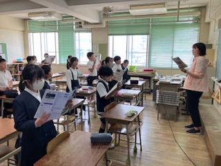 歌詞の内容や旋律の特徴を感じ取って歌う学習をしました。