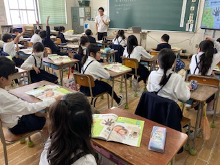 赤ちゃんの靴と自分の上履きを比べて、体の成長について学習しました。