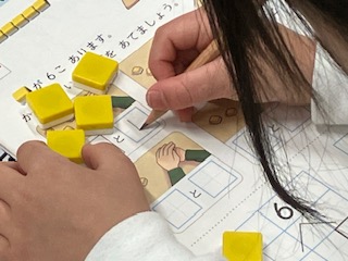 ブロックを使って、6はいくつといくつかを学習しました。