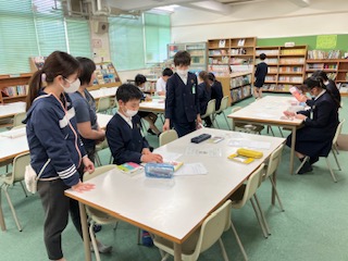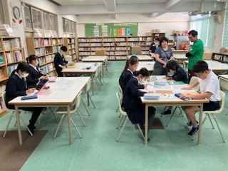 図書委員会です。みんなに本を紹介するポスターを作りました。