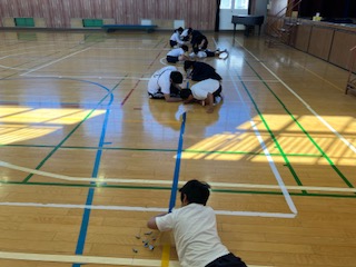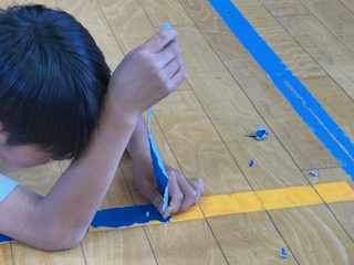 運動委員会です。古くなったラインを剥がして、新しいラインに貼り替えました。