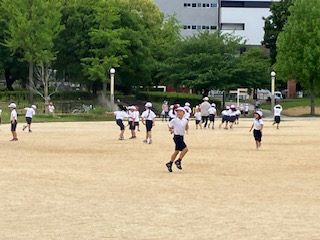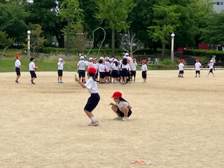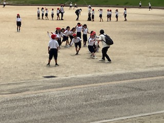 昼食後、グランドで縄跳び、はじめの一歩、鬼ごっこをしました。