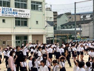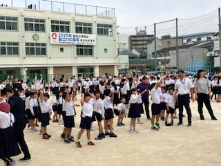 150周年記念行事の一つとして、一文字を作って航空機から写真撮影をしていただきました。ご多用のなか、ご協力いただきました地域の方々、PTAの皆さんに厚くお礼申しあげます。