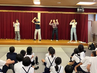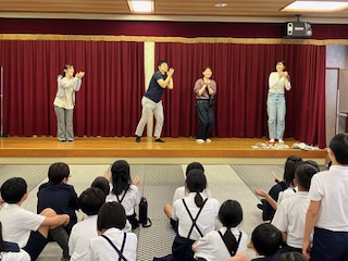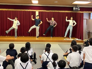 レクリエーションです。◯?クイズ、ジェスチャーゲームなど、とても盛り上がりました。最後には、サプライズで、先生方のダンスがありました。
