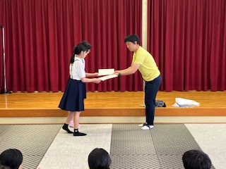 今日のサプライズで、今日誕生日の子どもたちにお祝いをしました。