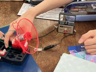 乾電池をつなぐ向きと、モーターの回る向きの関係について、調べました。