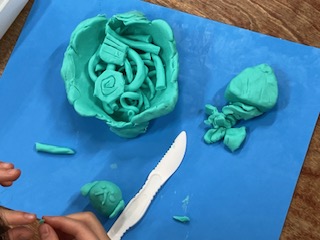 粘土で夏を表す、お祭り、貝殻などの作品を作りました。