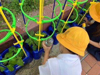 朝顔に水やりをしました。