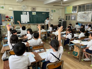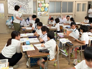 友だちと一緒に遊んで良かったと思うことを考える教材で、スクールアドバイザーの先生にお越しいただいて、研究授業を行いました。