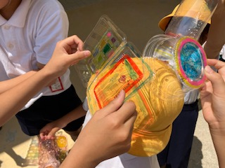 作品光のプレゼントを作って、水を入れ光を当ててみました。