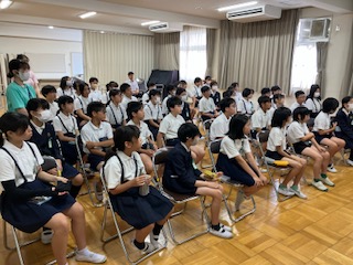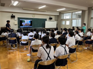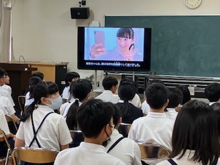 東淀川警察署の方がお越しいただき、チャットなどによる犯罪やトラブルに巻き込まれないようにと、ご講演くださいました。