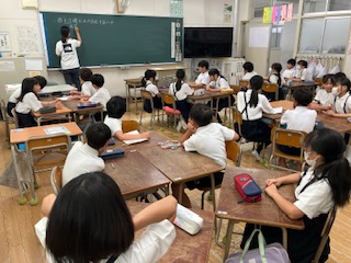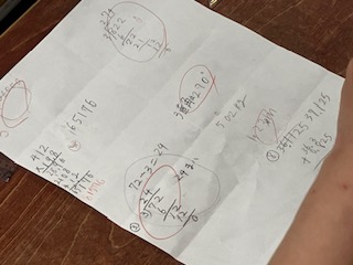 1学期に学習した範囲から、先生が選んだ8問について、班員一人ひとりが答える復習問題を行いました。