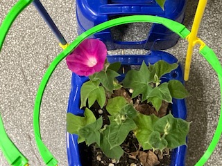 懇談会の帰りに持って帰っていただく、アサガオです。