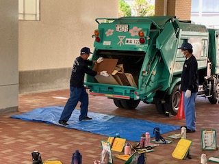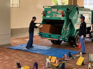 こんな大きな物でも、パッカー車にかかれば、木っ端みじんに。