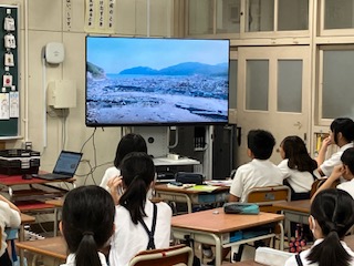 南海トラフ地震を想定した動画を見て、災害発生時の行動などを学習しました。