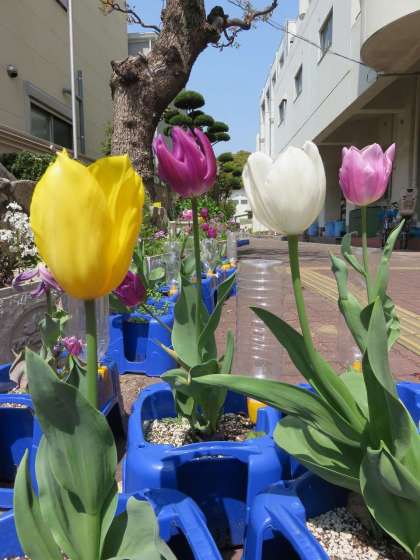チューリップと言えば「思いやり」。「思いやり」と言えば新庄小学校の子ども達とつながっていってほしいなぁ・・と思いながら、朝会の話をしました。