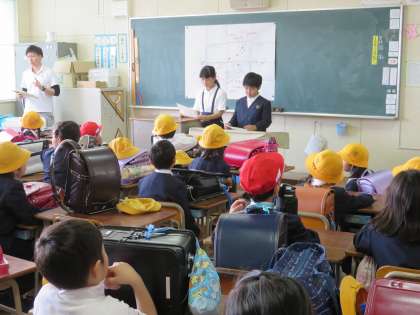 その時に、PTAの地区委員の方がどの教室でも『こども100番』の場所や通学路で危険なところなどを子ども達に向かって話をしていただきました。先生方が話をするのもいいですが、友達のお母さんが話をするというのは、子ども達にとってもとてもいいことだと思いました。