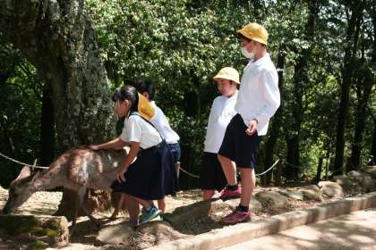 お弁当を食べおやつもしっかり食べた後は、トイレに行ったり鹿と遊んだりしていました。
