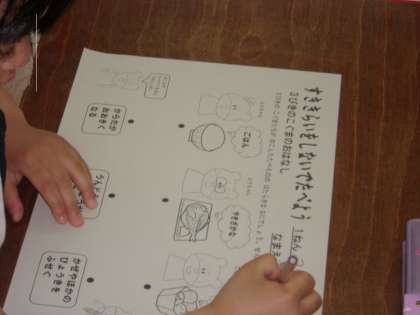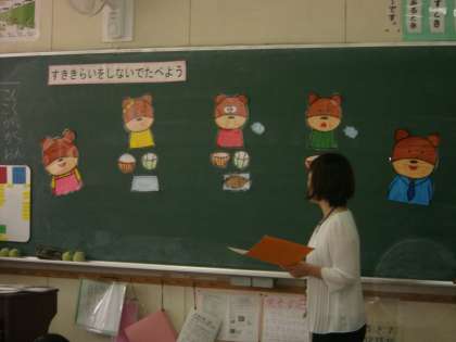 下新庄小学校より西岡先生が来てくださり、1年生が食育の学習をしました。