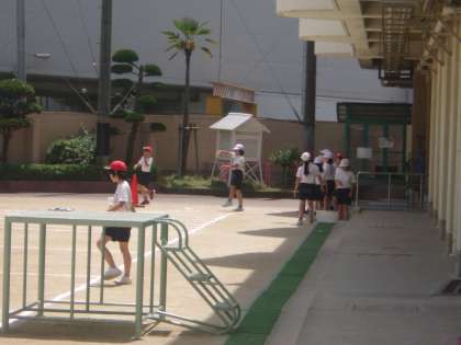 ボールを投げる人、拾う人に分かれてスムーズに行っていました。