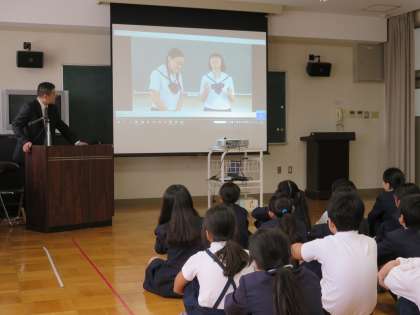今日は東淀川警察の方に来ていただき、6年生を対象に『非行防止教室』を開いていただきました。DVDを見ながらクイズ形式で教えてもらいました。