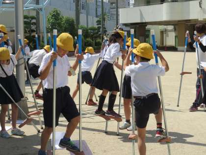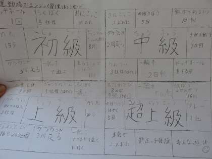竹馬をしたりジャングルジムに上ったり、うんていを一段とばしで行くなど、子ども達が持っているカードにはいろいろなミッションがありました。