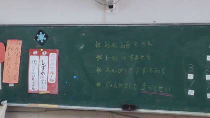 黒板にはのびのび教室の約束が貼ってあり、みんなルールを守って、大変熱心に学習をしていました。