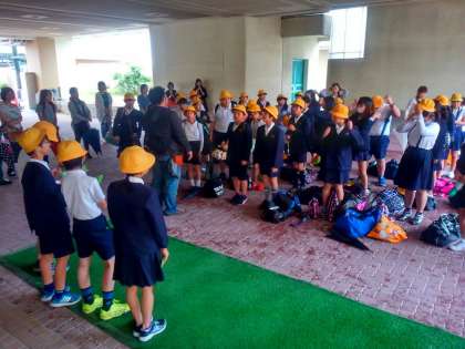あいにくの天気ですが、6年生38名全員元気に修学旅行に出発しました。