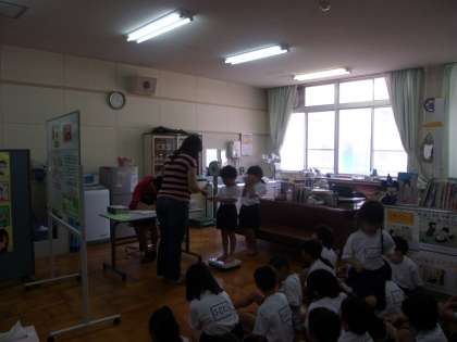 体重を測った時に爪が伸びていないかもチェックしました。プール学習がもうすぐ始まります。伸びていた人は短くきっておきましょう。