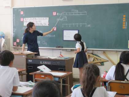 数直線をノートに書いたりグループごとに話し合ったりしたあとに、最後は黒板の前でみんなに発表してまとめました。